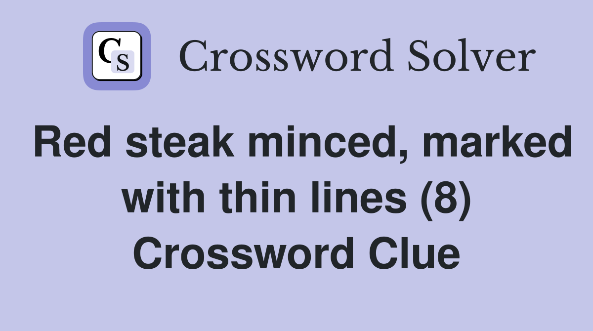 Red steak minced marked with thin lines (8) Crossword Clue Answers