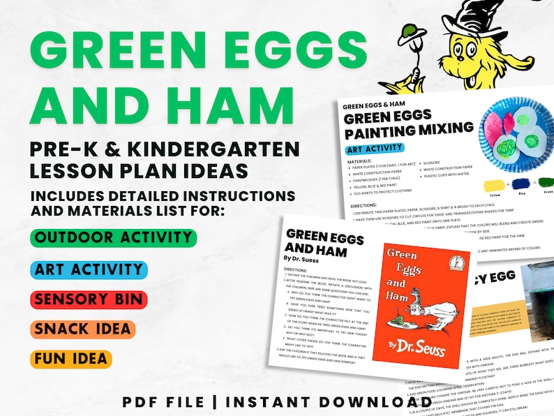 Green Eggs and Ham Reading Activity Preschool Kindergarten Reading