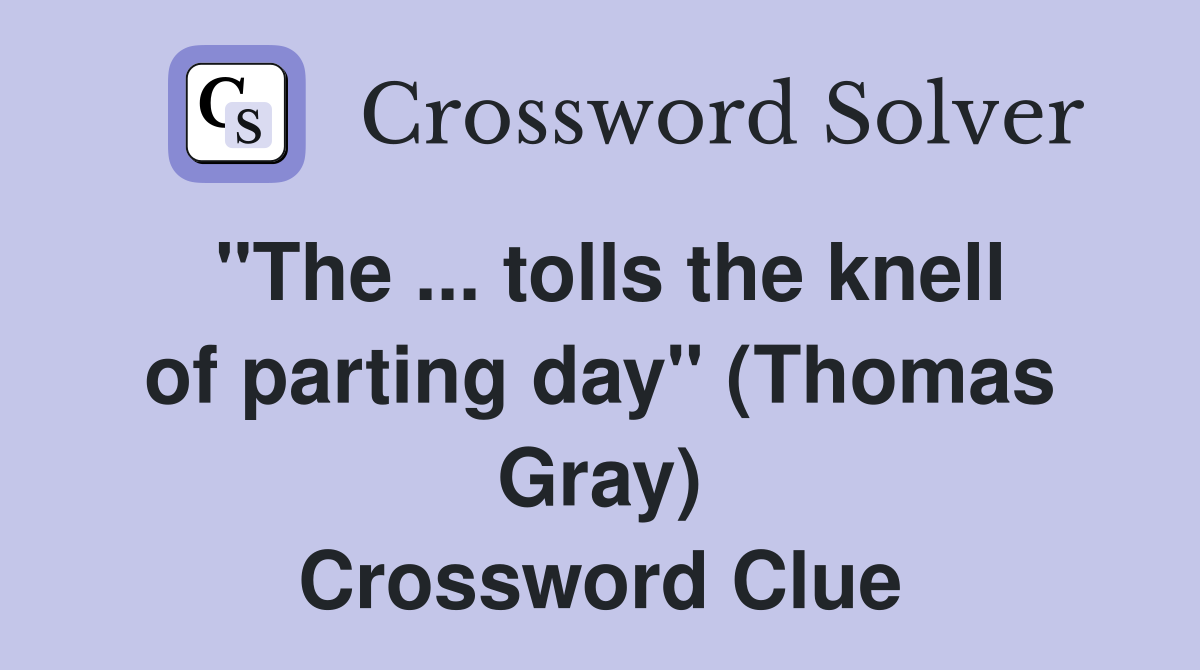 quot The tolls the knell of parting day quot (Thomas Gray) Crossword Clue