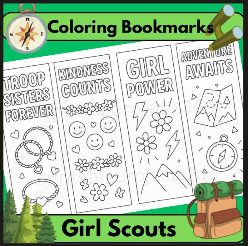 Girl Scout Values 24 Printable Coloring Bookmarks Scout Law Camping