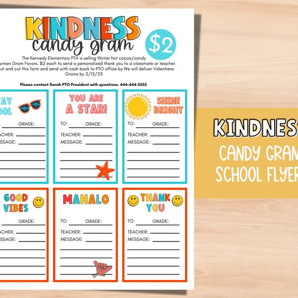 Candy Gram Fundraiser Kindness and Friendship for PTO/PTA School Event