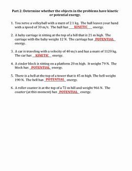 Potential And Kinetic Energy Worksheet Answers Free Worksheets Samples