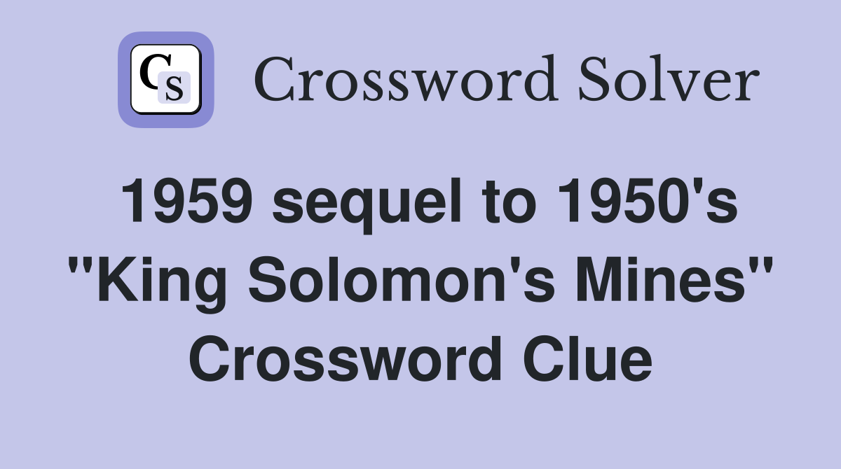 1959 sequel to 1950 #39 s quot King Solomon #39 s Mines quot Crossword Clue Answers