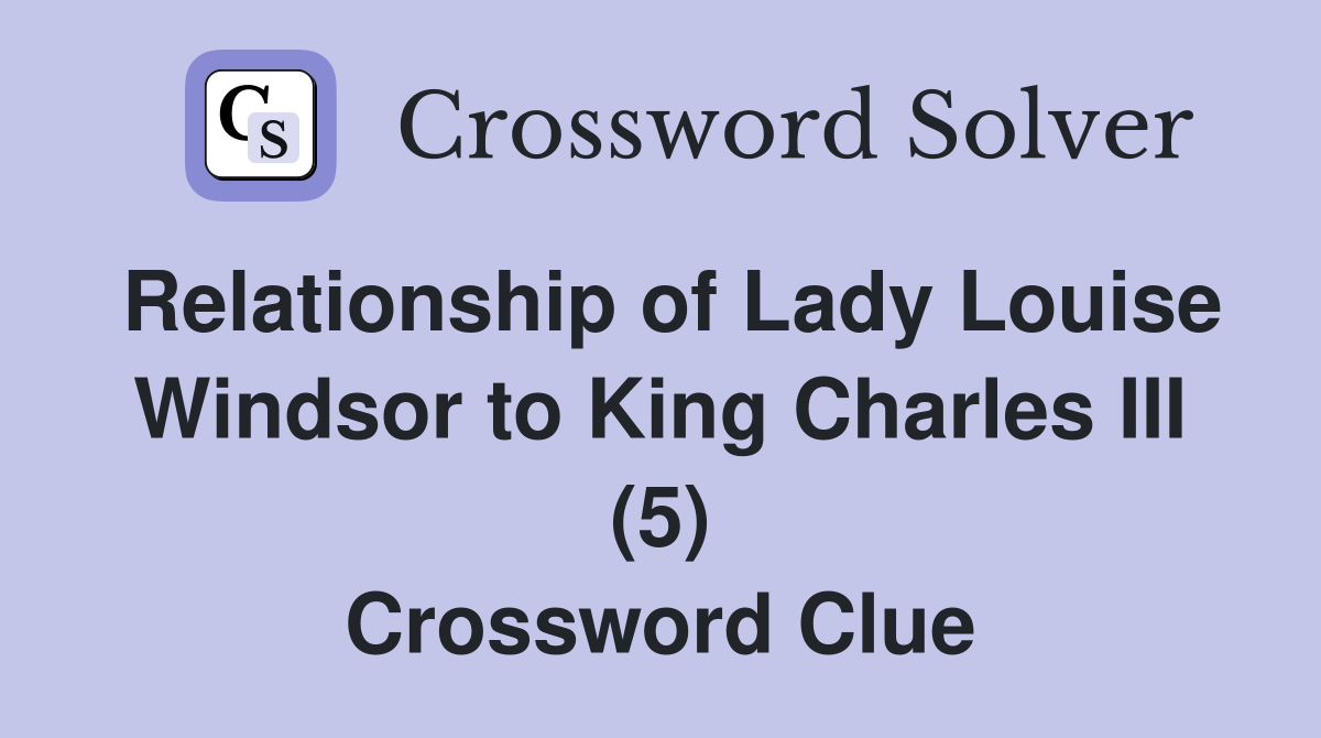 Relationship of Lady Louise Windsor to King Charles III (5) Crossword