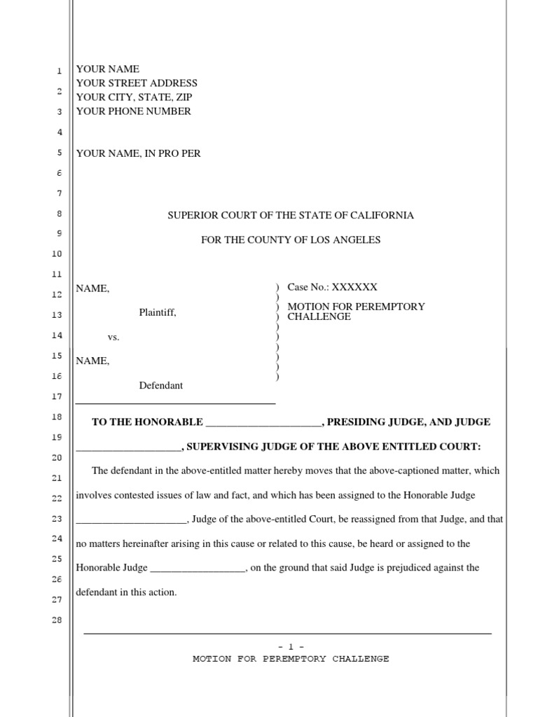Peremptory Motion Order Sample Motion In United States Law Judge