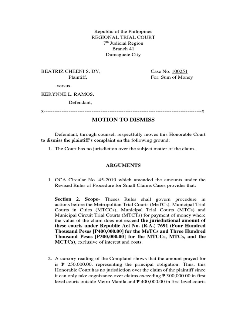 Sample Motion To Dismiss PDF Legal Procedure Courts