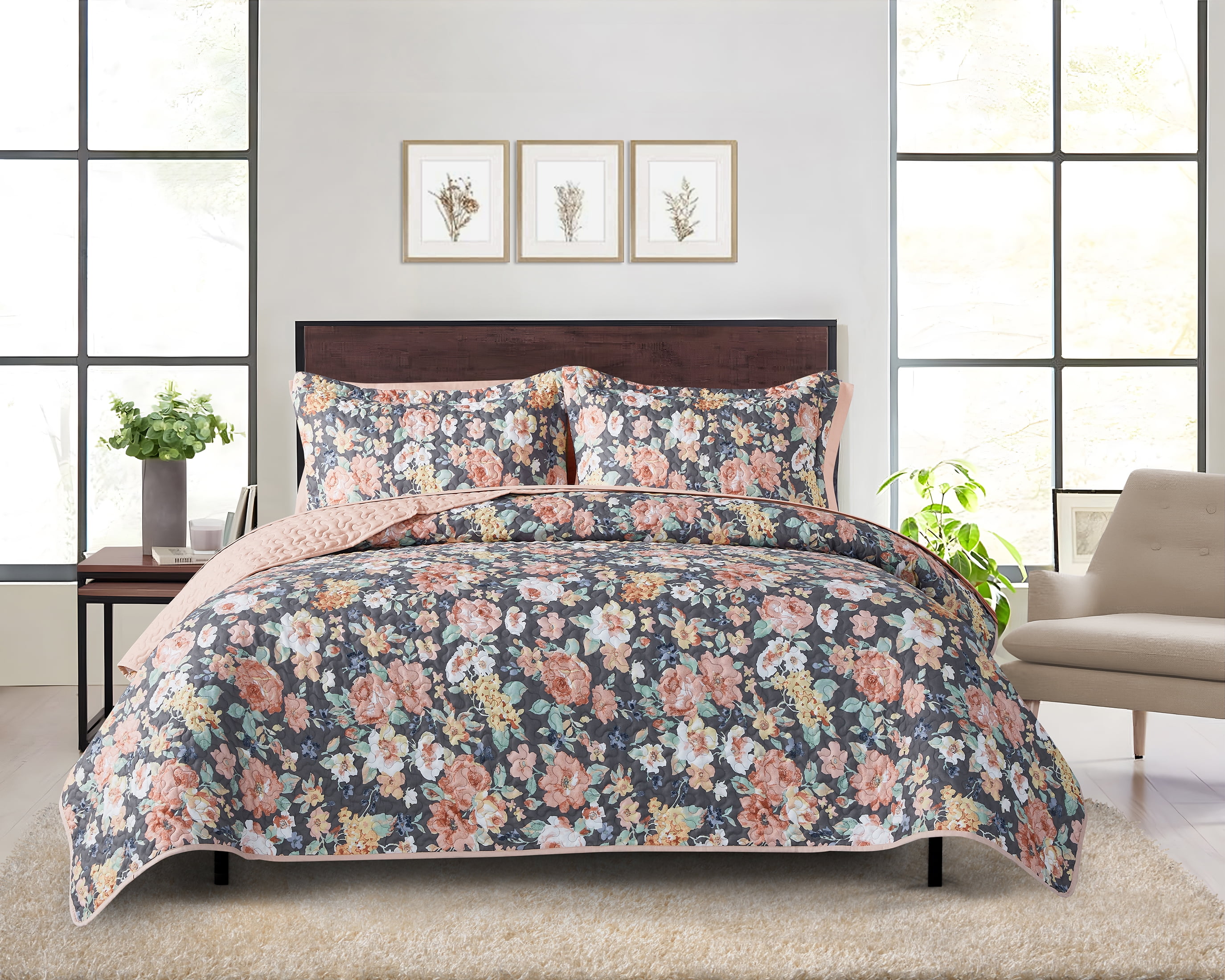 Free Shipping Mainstays King Reversible Quilt Set with Pink Blush