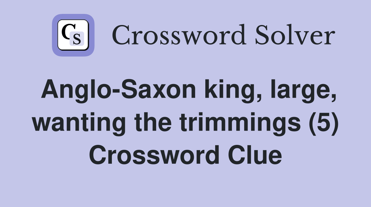 Anglo Saxon king large wanting the trimmings (5) Crossword Clue