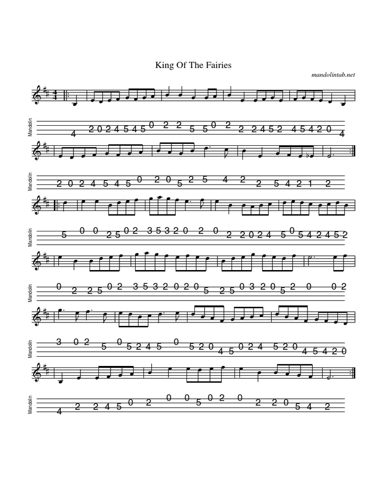 Irish Music Tune: King Of The Fairies with Mandolin Tab Sheetmusic