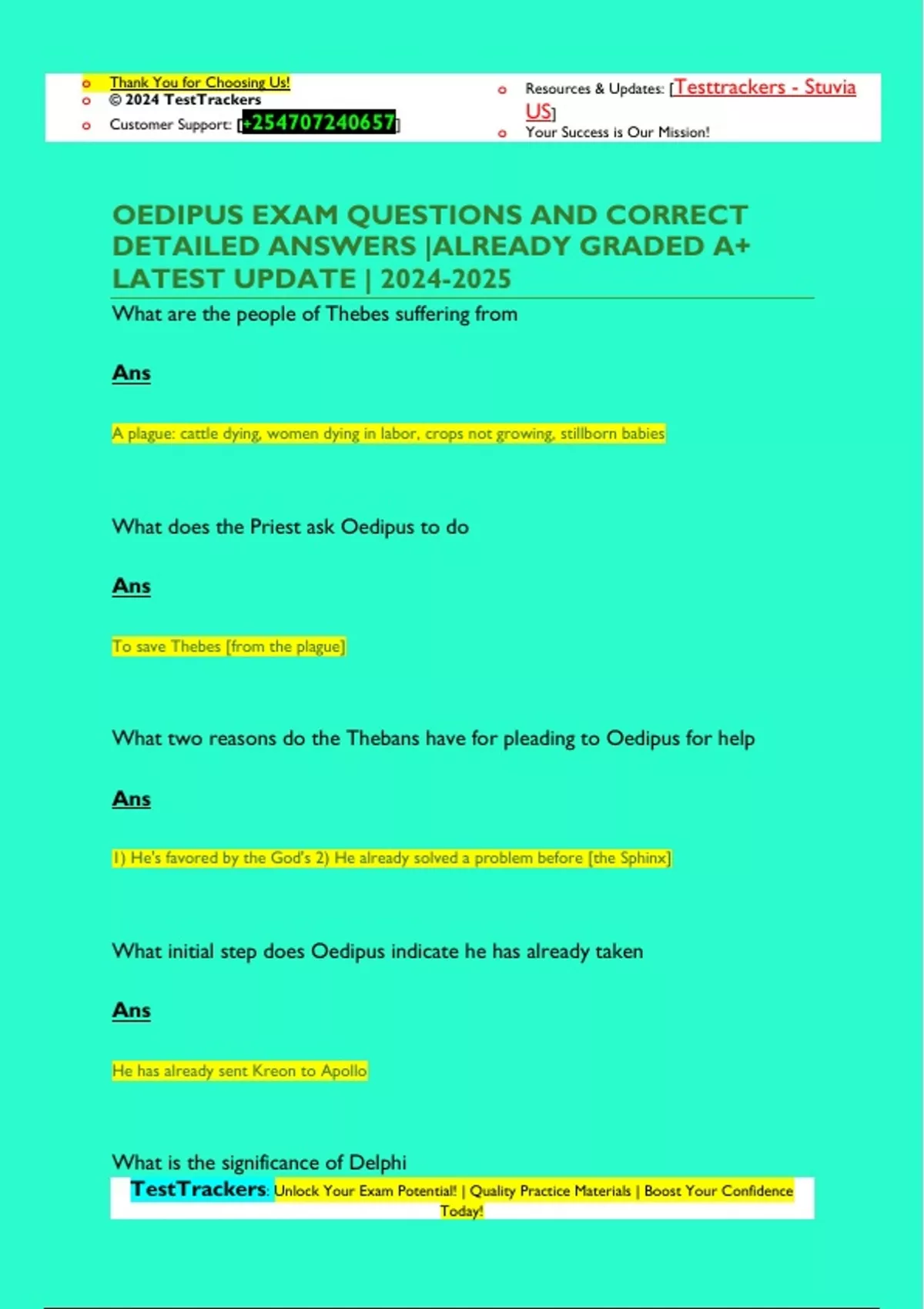Oedipus is the king of what city? Ans Thebes What are 3 things the