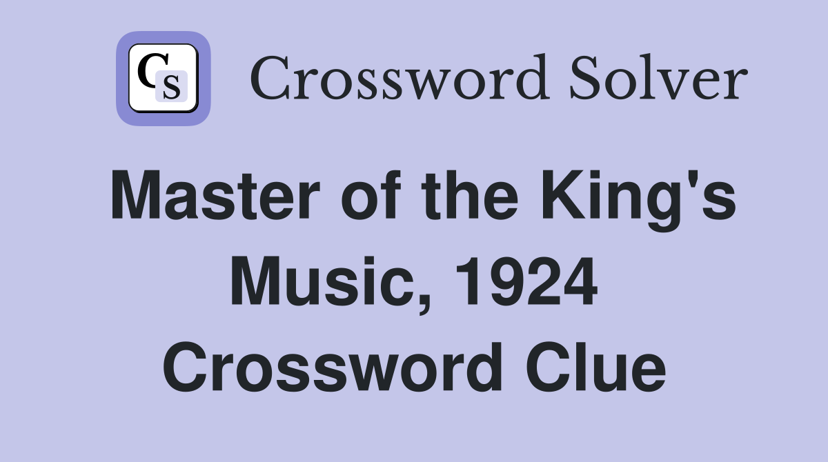 Master of the King s Music 1924 Crossword Clue Answers Crossword