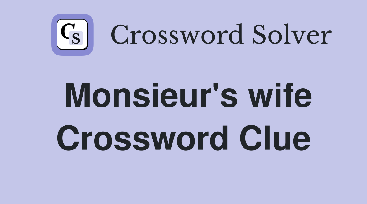 Monsieur s wife Crossword Clue Answers Crossword Solver