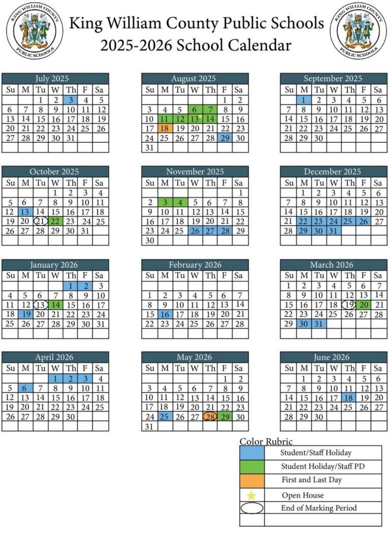 King William Schools Calendar