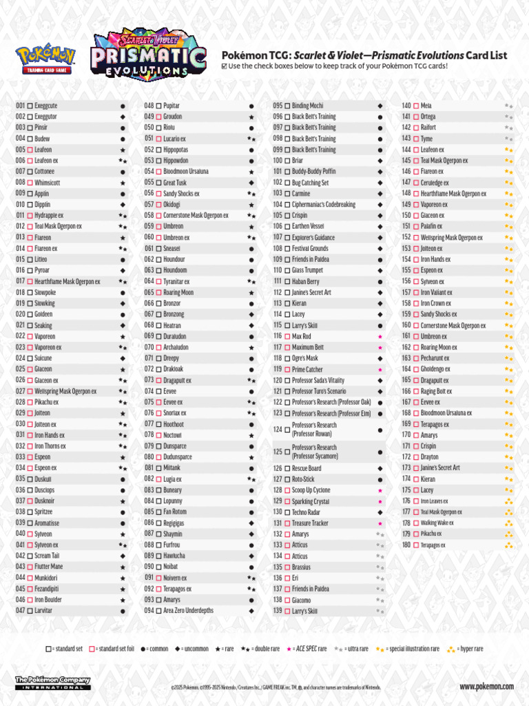 Prismatic Evolutions Card List PDF Pokémon Nintendo