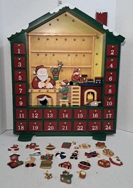 CHRISTMAS ADVENT CALENDAR Santas Workshop Wood Ornaments Elf Costco