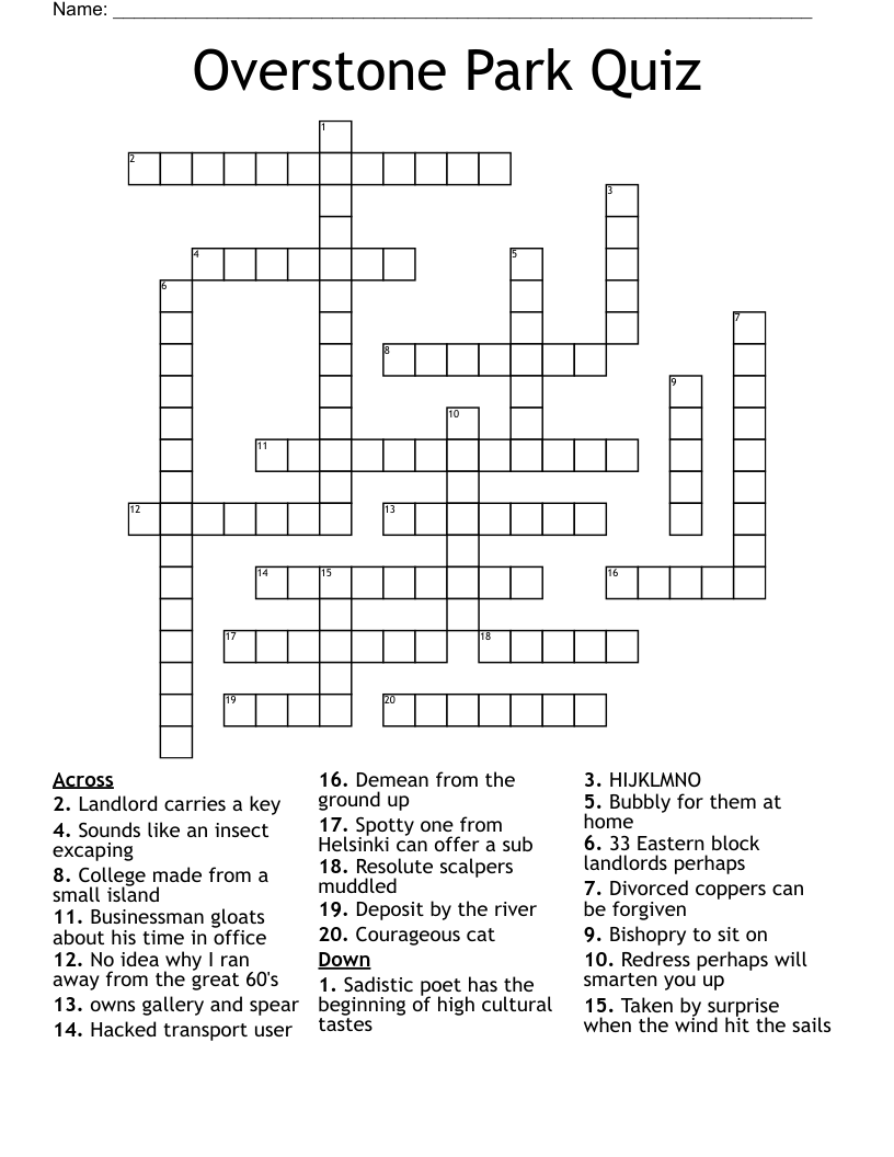 Overstone Park Quiz Crossword WordMint
