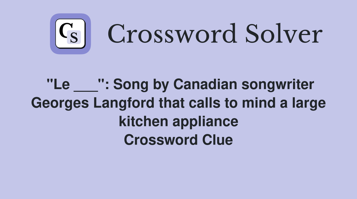 Kitchen appliance brand Crossword Clue Answers Crossword Solver