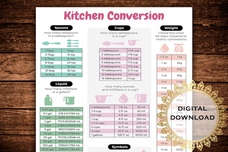 Kitchen Conversion Chart Printable Kitchen Measurements Cheat Sheet