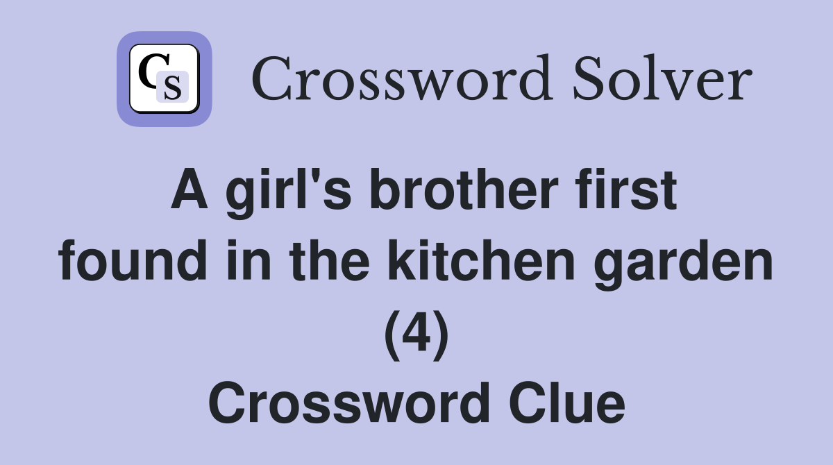 A girl #39 s brother first found in the kitchen garden (4) Crossword Clue