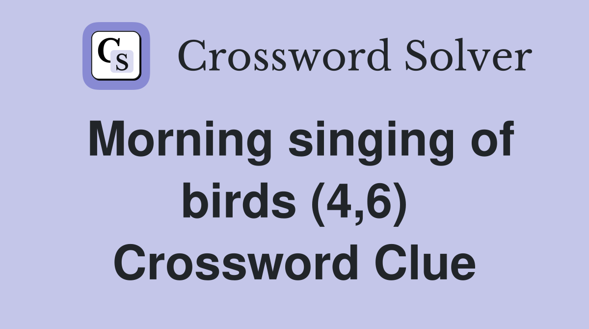 Morning singing of birds (4 6) Crossword Clue Answers Crossword Solver