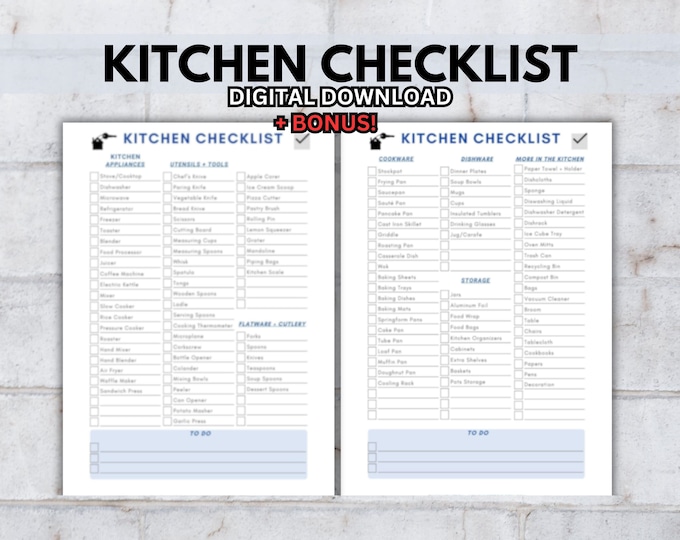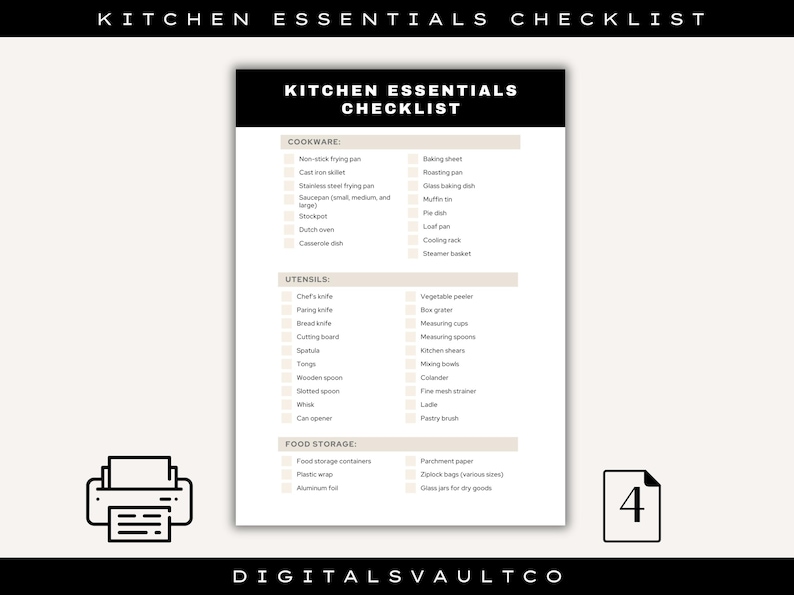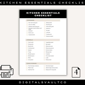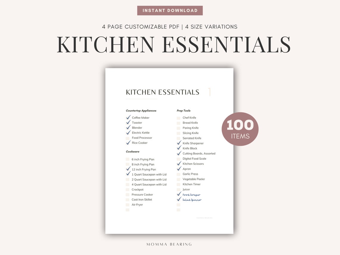 Kitchen Essentials Checklist Printable Instant Download Kitchen Must