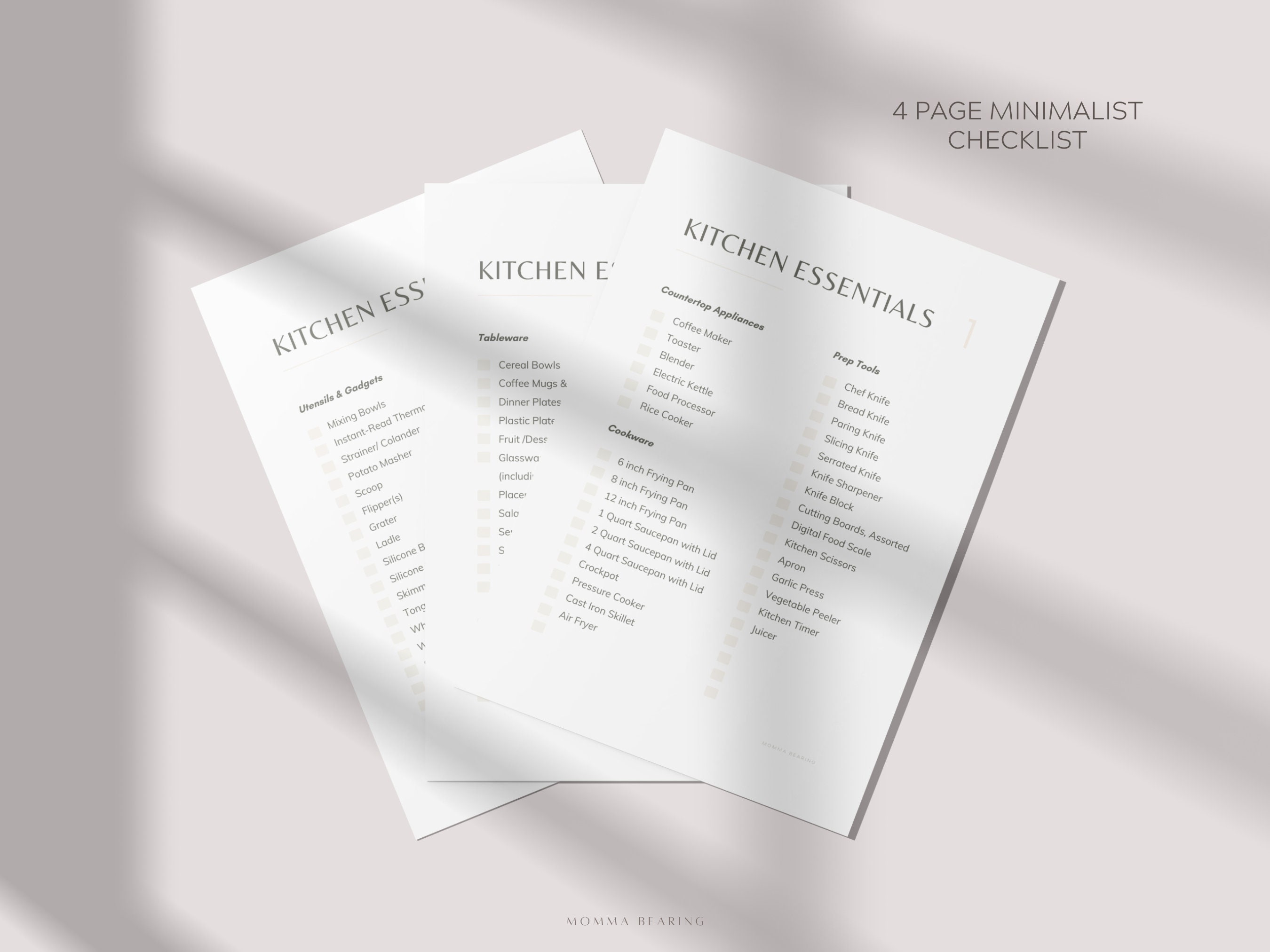 Kitchen Essentials Checklist Minimalist PDF Printable Kitchen Tools