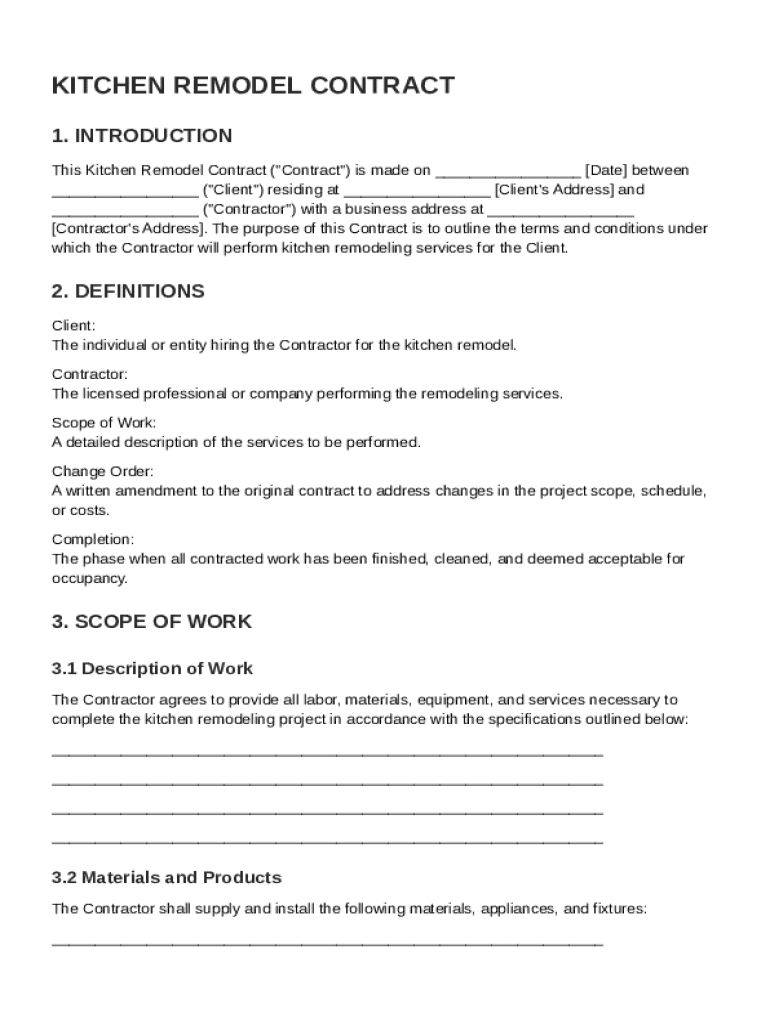 Kitchen Remodel Contract Template: Fill out sign online DocHub