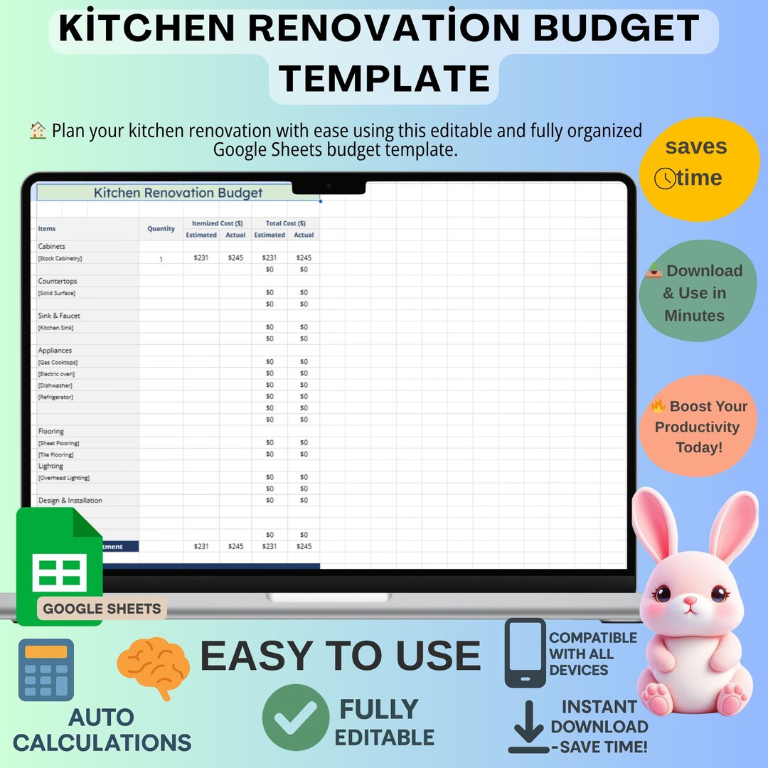 Kitchen Renovation Budget Template Google Sheets Editable Remodel