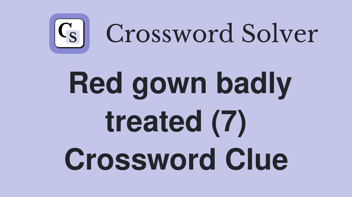 Red gown badly treated (7) Crossword Clue Answers Crossword Solver