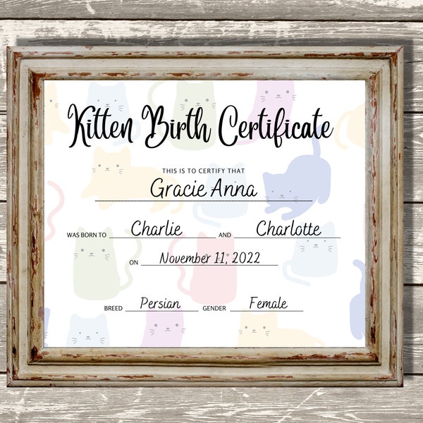 PET BIRTH Certificate: Celebrate Your Furry Friend #39 s Arrival Kitten