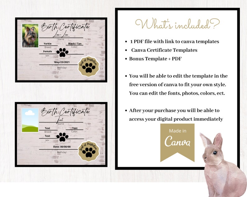 EDITABLE Pet Birth Certificate Template Puppy Birth Certificate