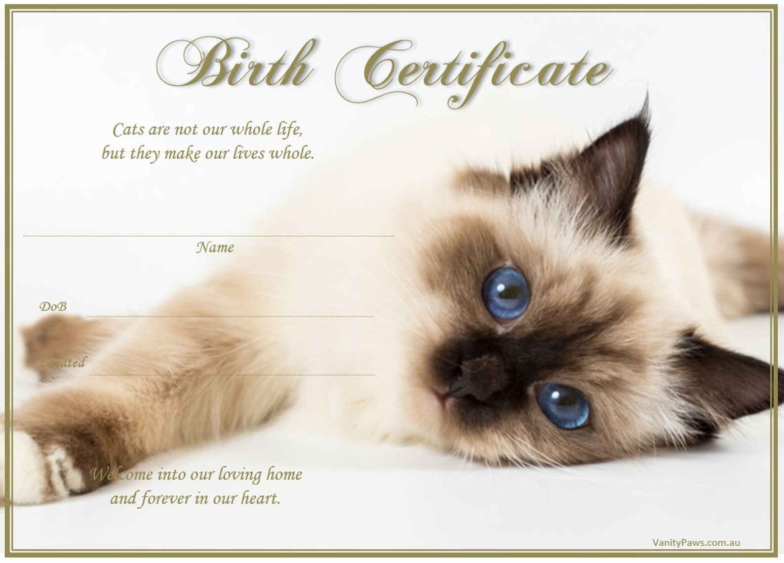 Cat Birth Certificate Template Free 2 Cat Birth Birth with regard to