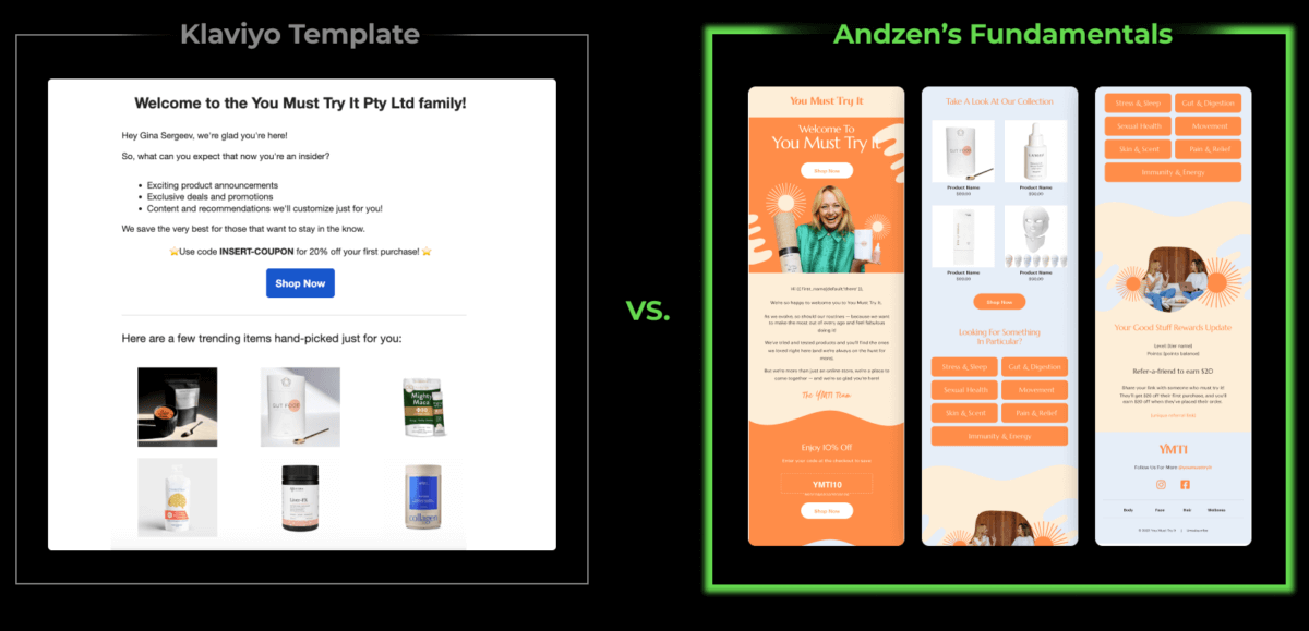 Setup klaviyo template newsletter welcome series abandoned cart flow