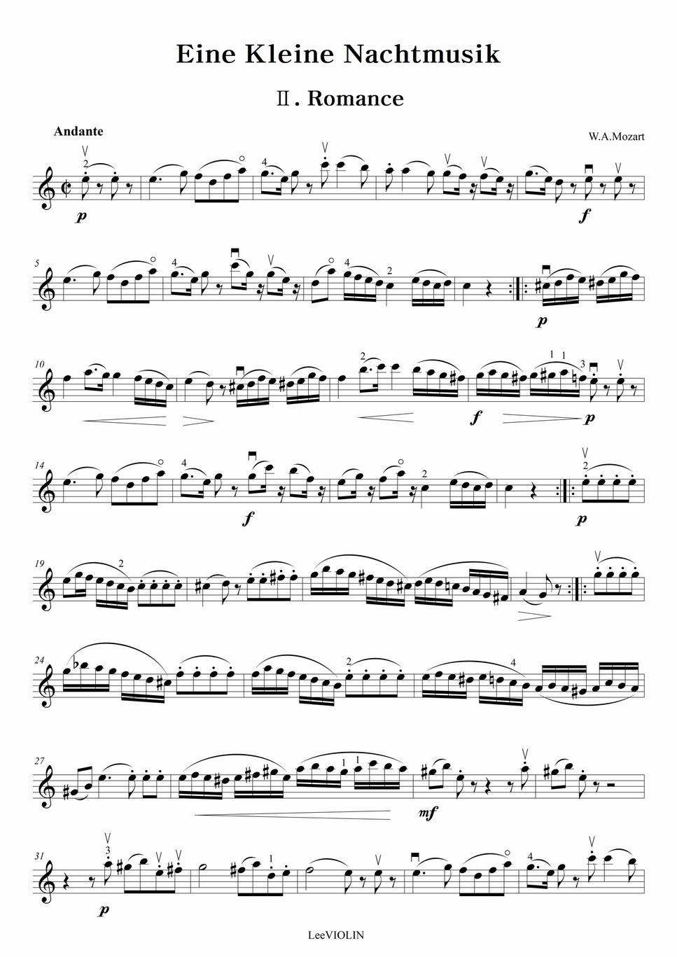 V A Mozart 아이네 클라이네 나흐트무지크 2악장 Eine Kleine Nachtmusik 2nd Movement