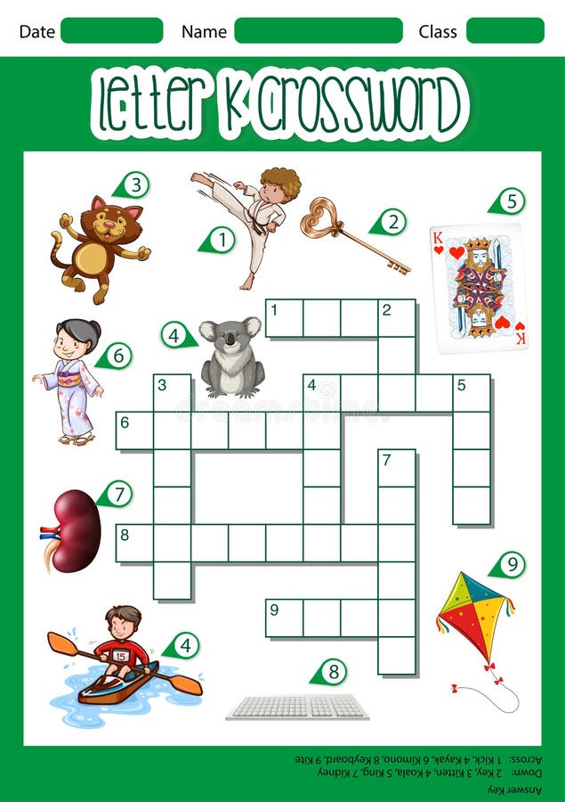 Free Printable Letter K Crossword Worksheet kiddoworksheets