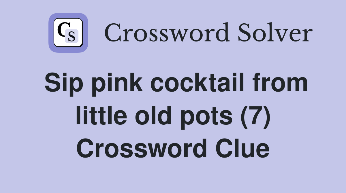 Sip pink cocktail from little old pots (7) Crossword Clue Answers