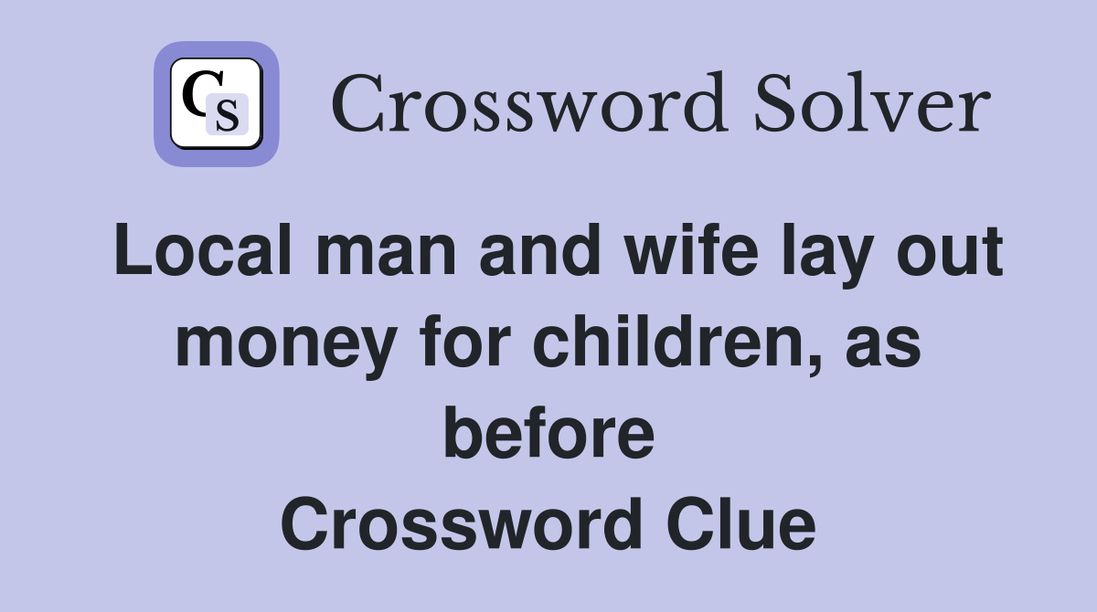 Local man and wife lay out money for children as before Crossword