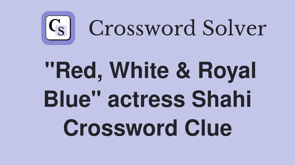 quot Red White Royal Blue quot actress Shahi Crossword Clue Answers