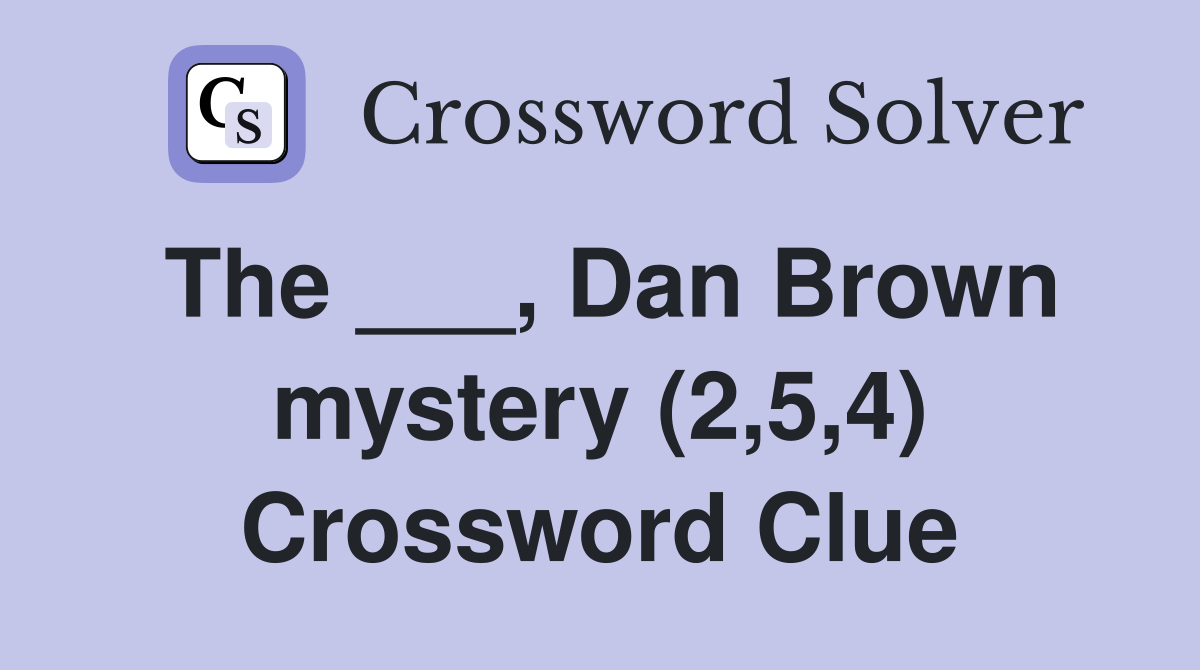 The Dan Brown mystery (2 5 4) Crossword Clue Answers Crossword