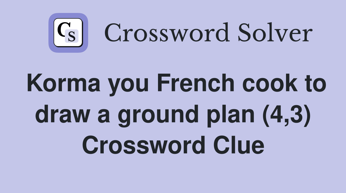 Korma you French cook to draw a ground plan (4 3) Crossword Clue