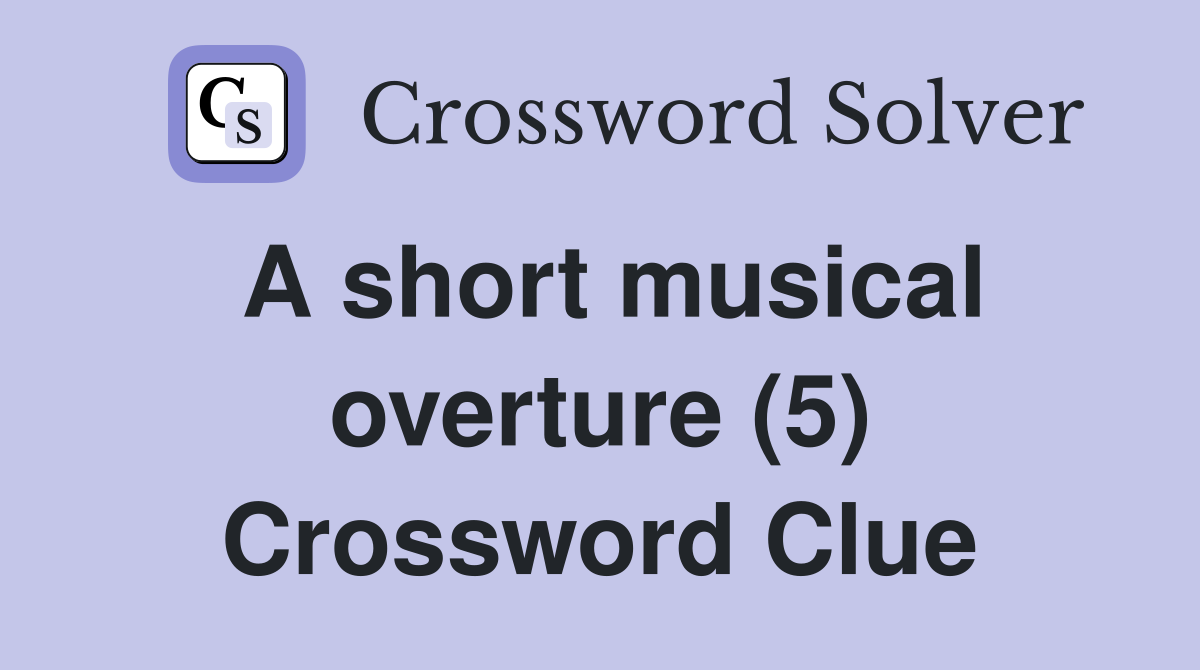 A short musical overture (5) Crossword Clue Answers Crossword Solver
