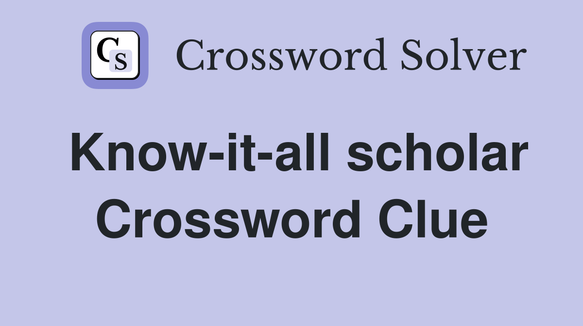 Know it all scholar Crossword Clue Answers Crossword Solver