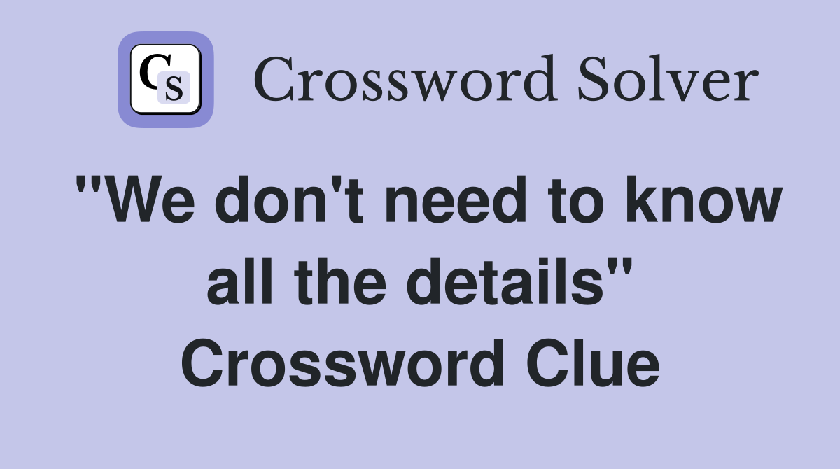 quot We don #39 t need to know all the details quot Crossword Clue Answers