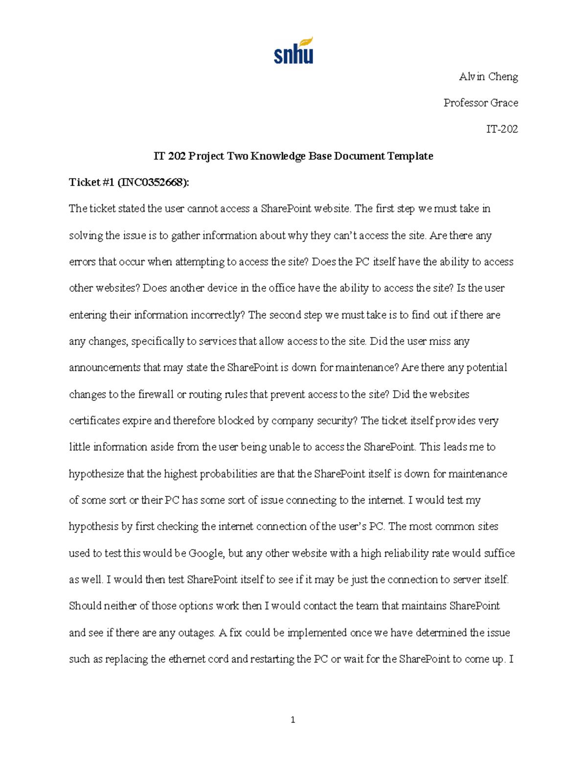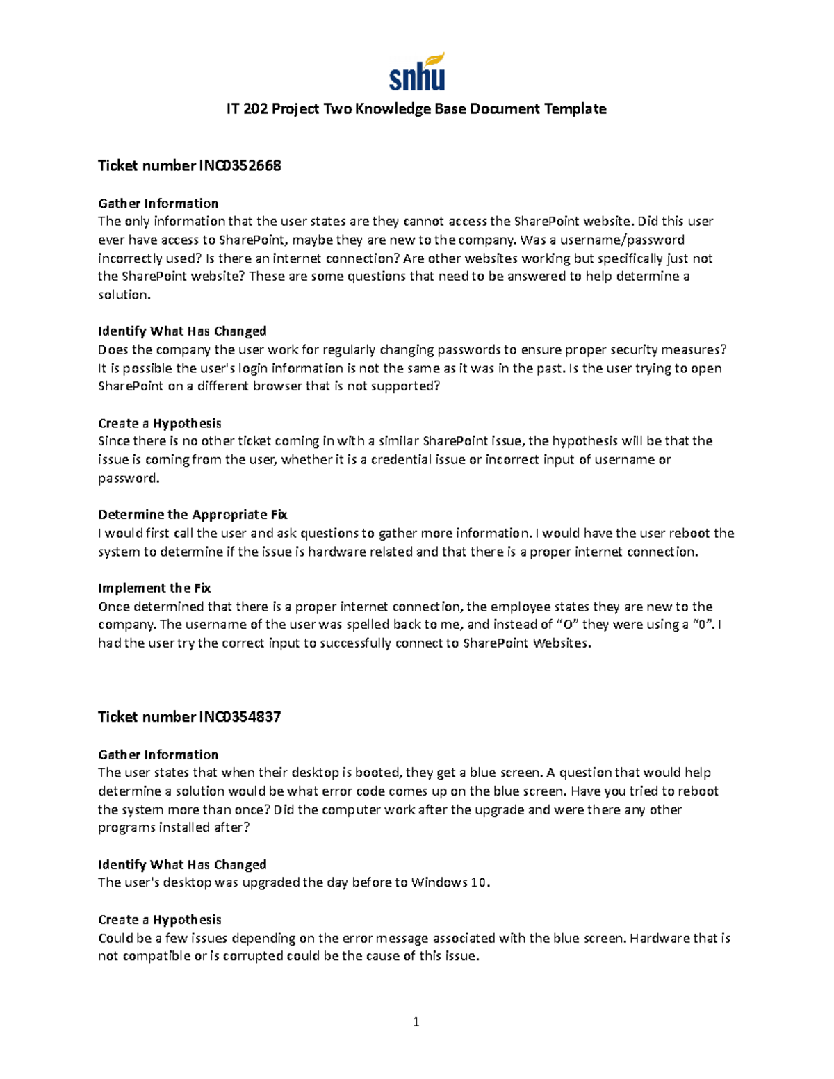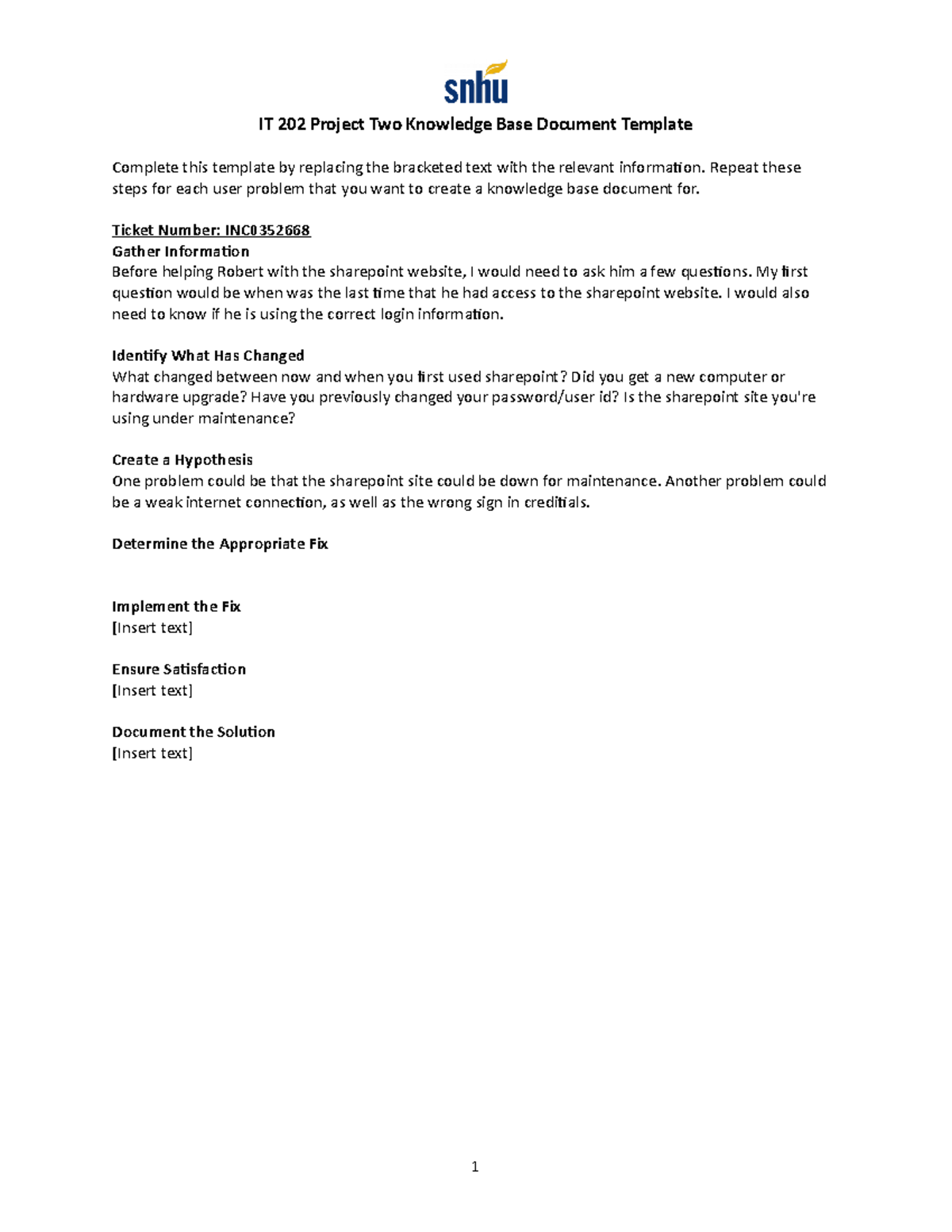 IT 202 Project Two Knowledge Base Document Template IT 202 Project