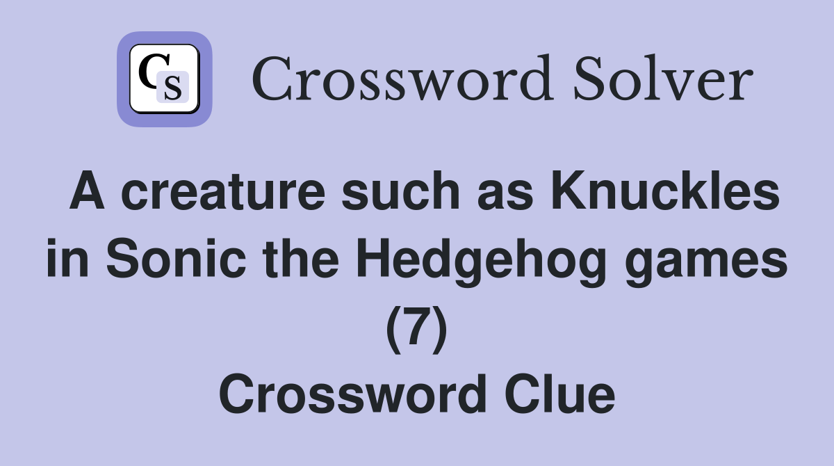 A creature such as Knuckles in Sonic the Hedgehog games (7) Crossword