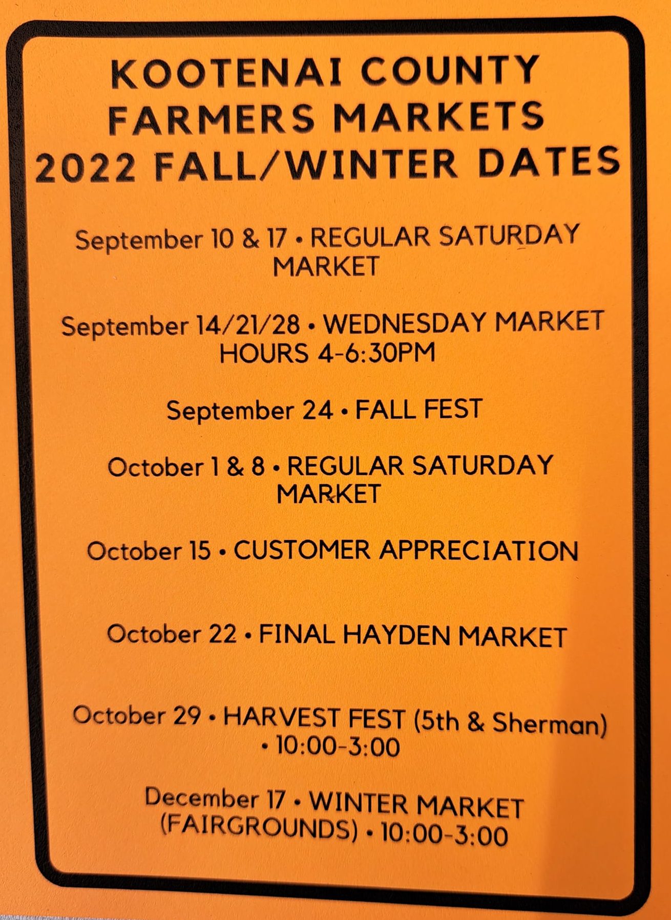 Fall Fest Last Wednesday Market Kootenai County Farmers #39 Markets