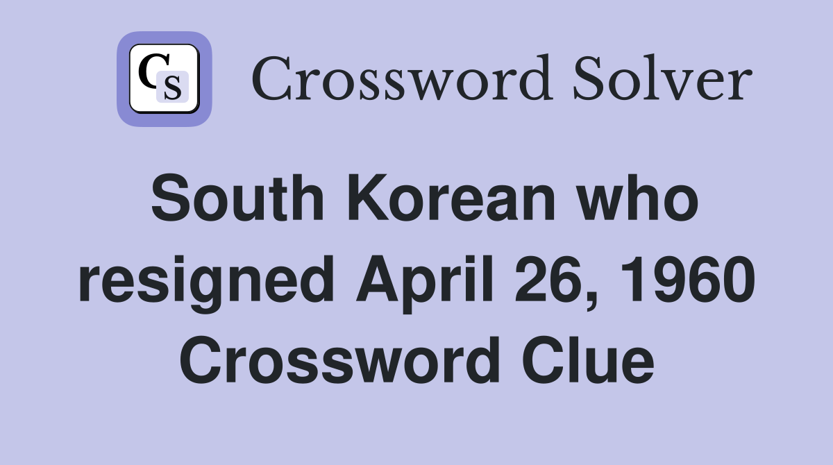 South Korean who resigned April 26 1960 Crossword Clue Answers
