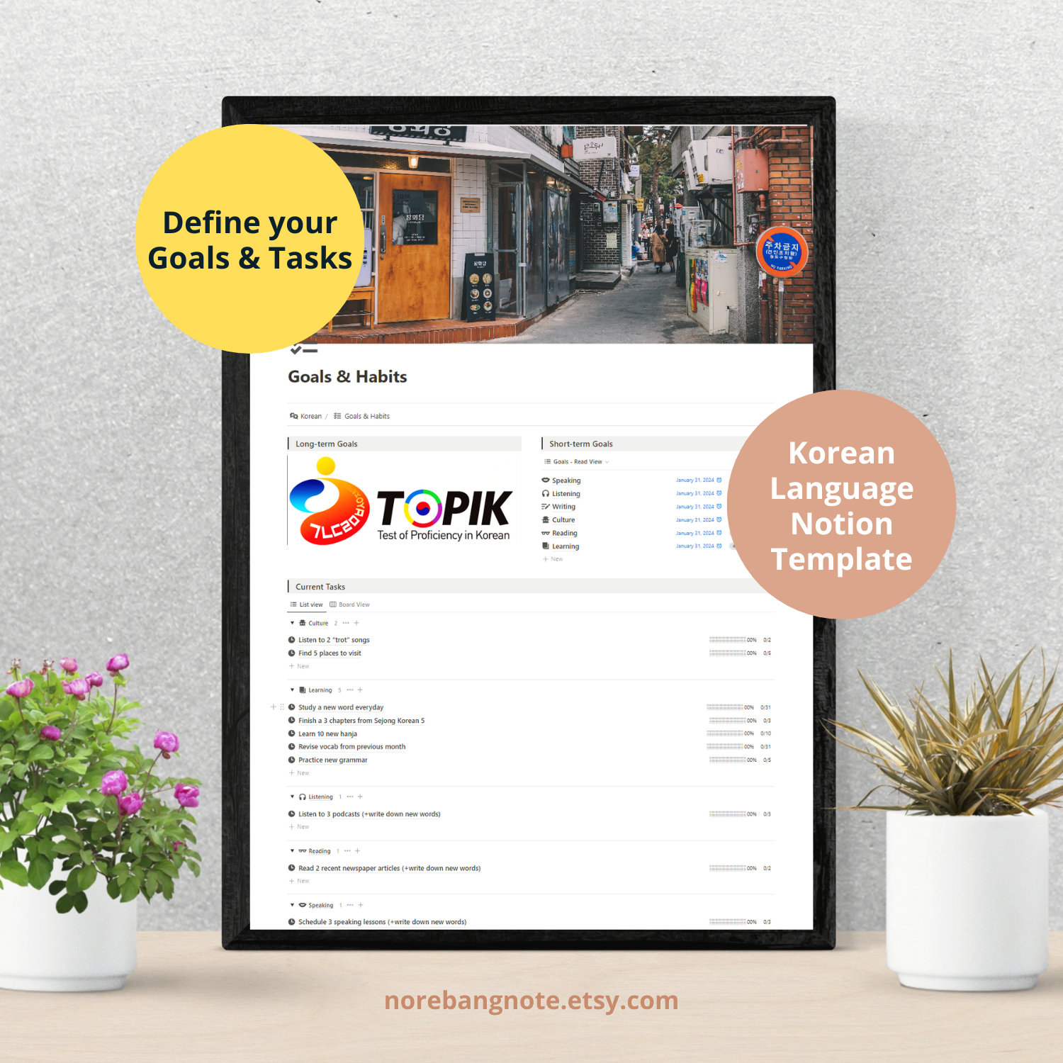 Planner for Korean Learning with Notion Learning template Notions