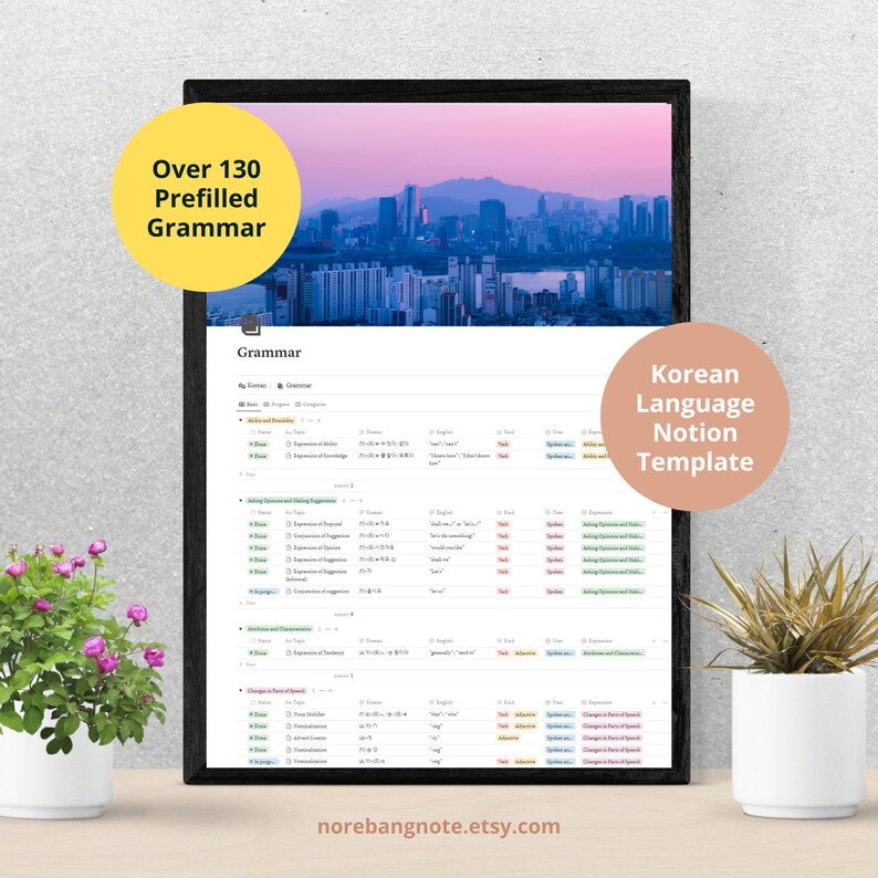 Korean Notion Language Study Planner Over 130 Grammar Structures Notion