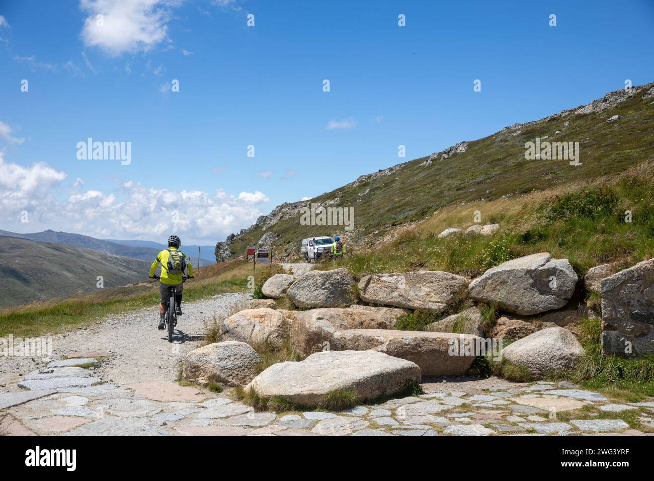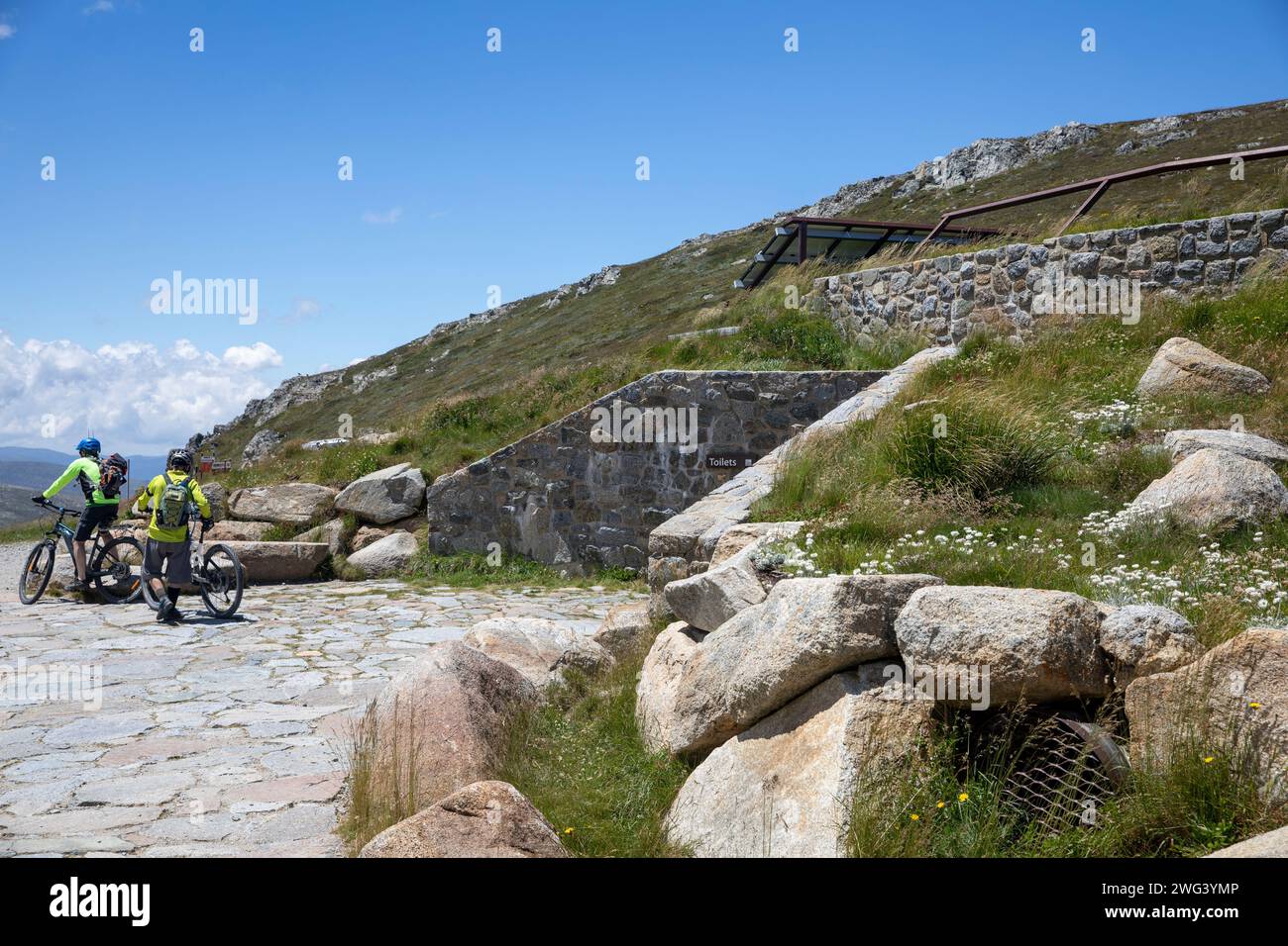Rawson Pass on Mt Kosciusko and mountain bike cyclists outside the